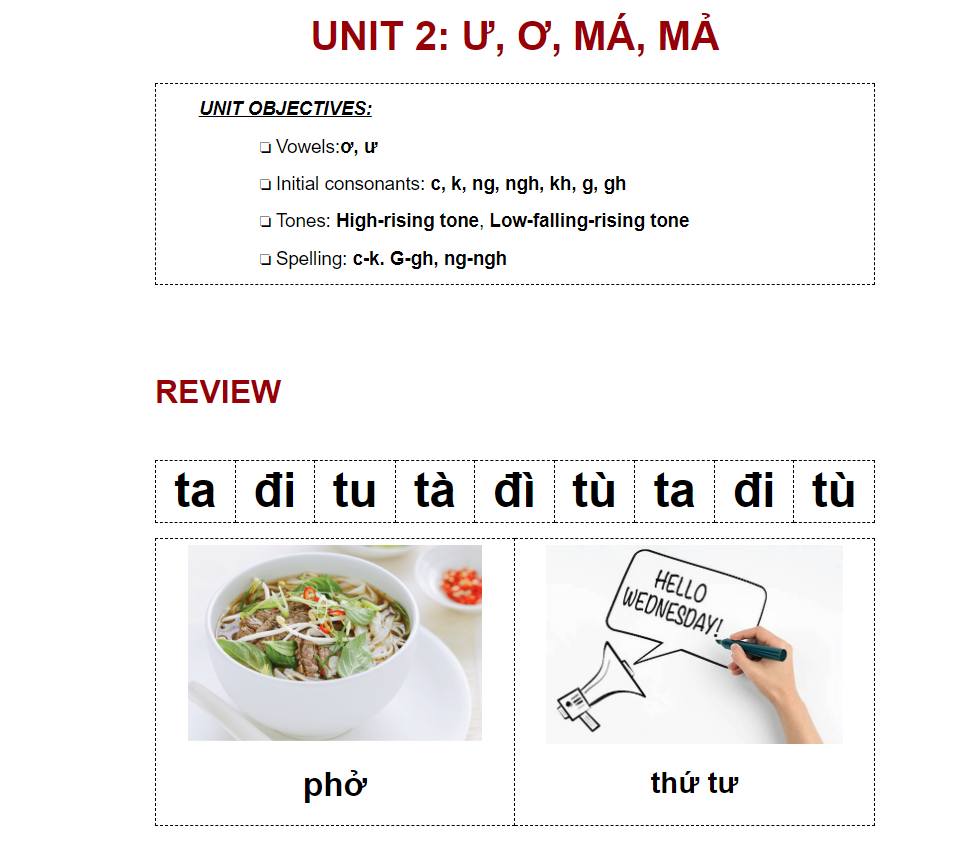 - Be able to distinguish the 6 Vietnamese tones - Produce every Vietnamese sound clearly in Southerner Dialect